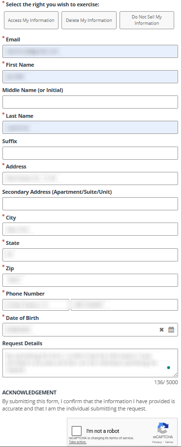 - Account deletion vs. listing removal: pick deletion, do-not-sell/share, or access as needed.