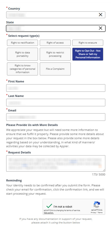 After verification, select deletion or Do-Not-Sell. If you’re a California resident, you may request that Appier not sell or share your data under the California Consumer Privacy Act. This request pursuant to the California consumer rule applies to both Do-Not-Sell and data removal actions.