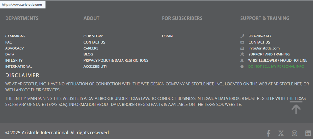Removing data from Aristotle helps reduce the exposure of personal information. This concerns your name, address, and phone number. The site supports campaign and public affairs tools and may display contact details drawn from public records and commercial sources; information collected can include personal data summarized on official pages.