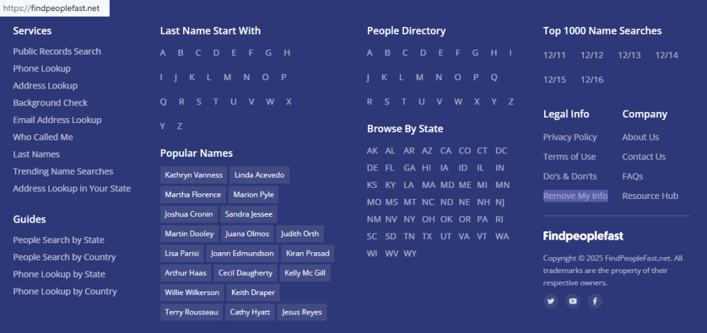 Removing your personal information matters because a public listing can expose your name, address, and phone number. This can reduce privacy and increase risks like identity theft, harassment, or someone trying to stalk you. Find People Fast typically displays entries sourced from public records. These are business records, court records, voter registrations, and other publicly available information. The site organizes them in a directory format. Some services may sell your personal information or share it through partner feeds, so limiting what’s shown can reduce unwanted contact. This step-by-step guide includes screenshots, official links, and timelines so you can submit a request, save proof, and follow up calmly.