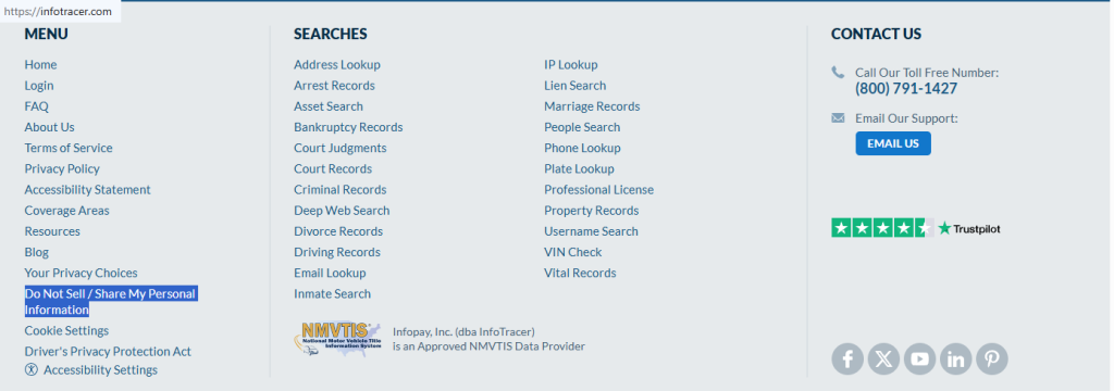 After you verify, finish the request on the confirmation screen and save any reference number. If you’re redirected to InfoTracer, repeat the same steps there. A data broker can show the same record in more than one place. Tip: Keep a redacted screenshot of the final screen for your records.
