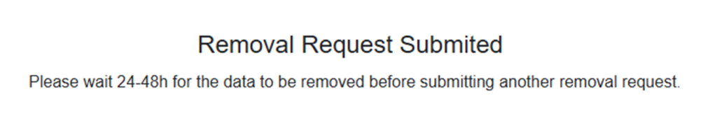 Most requests show an on-page message right away, and many also send a confirmation email for verification. If your opt-out request needs verification, complete it by code or link, then allow 1–3 days for updates. If nothing changes after 3 days, repeat the online opt-out process once and keep both confirmations. If you see an on-page note like “information removed,” save it as proof.