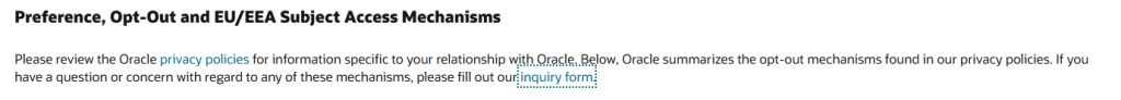 - Billing confusion: To cancel a paid subscription for Oracle products and services, use your account billing settings; this is separate from privacy requests.