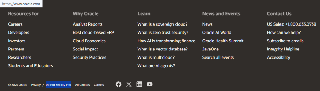 Oracle is a technology company, and its privacy policy explains how Oracle uses consumer data. Data may be collected directly or from third-party sources; it may include sensitive details, and Oracle may also use personal information for analytics and to tailor marketing and sales activities. It references business-to-business services to customers.