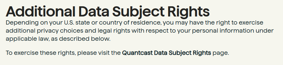 Open Your Privacy Choices page, then click on the Quantact Data Subject Right link. Provide your cookie or mobile device details and, if asked, an email address, then confirm via code or link. Requests related to interest-based advertising are usually completed within about 30 days.