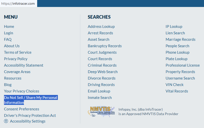 InfoTracer is a people search site. It provides access to aggregated consumer listings and may republish results as its database refreshes. InfoTracer collects information from public records and commercial sources. It may also use data from a vast number of partners.