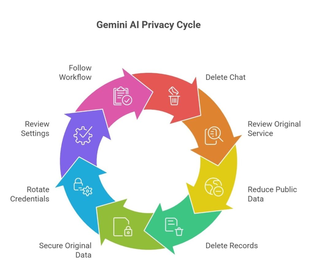 If you paste something private into the tool, act quickly. Delete the chat. Review the original service. One deleted chat does not delete the source email, file, or photo. History-off chats can still sit in a short retention window. That contributes to Gemini AI privacy concerns.