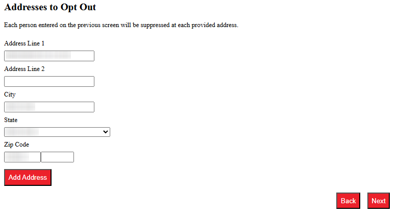 Open the suppression portal. On the first screen, you’ll usually see the “Next” button, plus a short notice about who qualifies. Read that notice before you start, especially if you are submitting for family members at the same address. Tip: If you save screenshots for your records, blur personal information before saving or sharing.