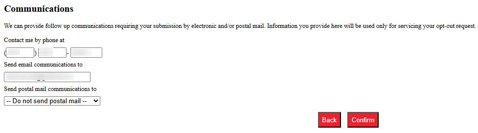 | Opt-out Methods | web form/email/mail |