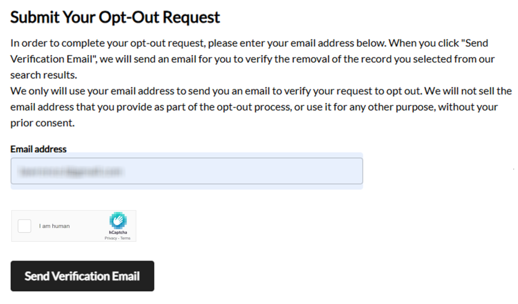 After you choose the right listing, enter your email address in the field. Check the address carefully before you submit the form. If you save proof of the request, hide inbox details and other personal data. A simple tip is to copy the page title and date for your records.