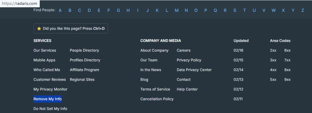 Radaris Opt Out Guide