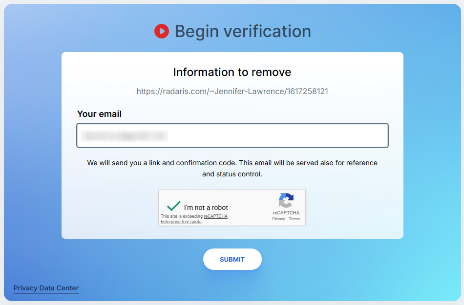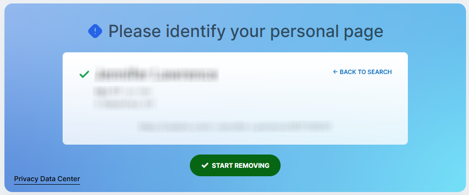Open the privacy/control page (“Remove My Info”) and start the opt-out process. Before taking screenshots, blur private information. Tip: Keep a second tab open for your listing so you can follow the steps without losing your place.