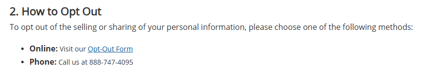 | Opt-out Methods | web form/contact form |