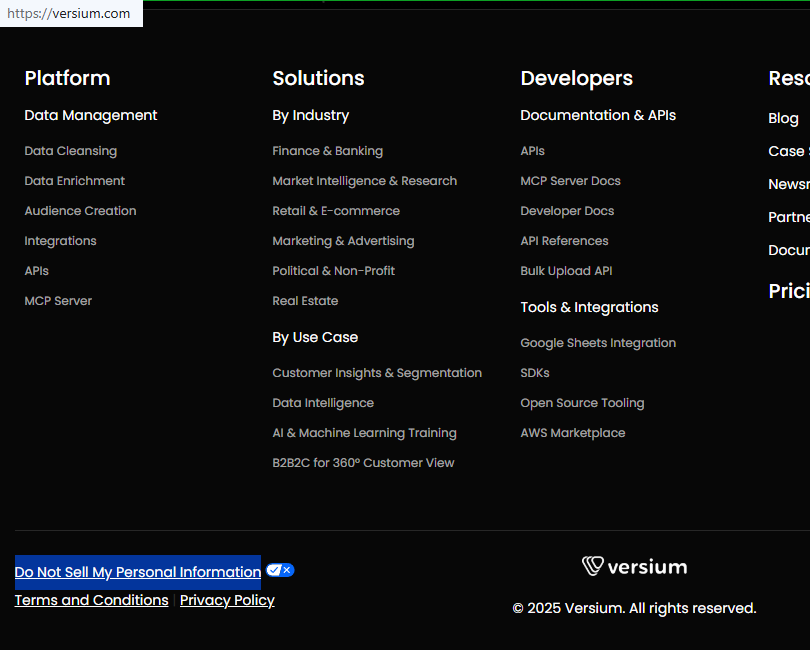 Go to versium.com. Use the footer link to the company’s opt-out page. Use the live domain only. Before you save a screenshot, blur names, tabs, and all personal data. A good tip is to open the page twice: once in a normal browser and once in a private window, then keep the cleaner view for your records.