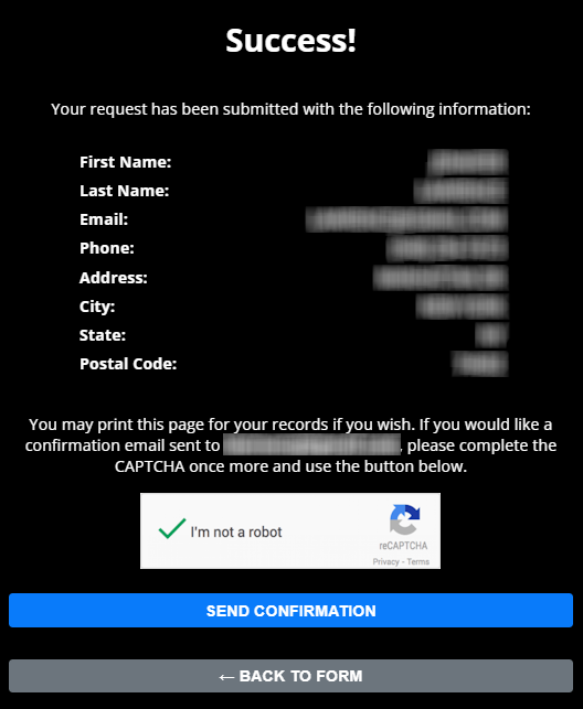 Open the official privacy policy. Enter the needed identifiers, finish the CAPTCHA, and watch for a confirmation. Timing varies, but some state notices say a response can take up to 45 days.